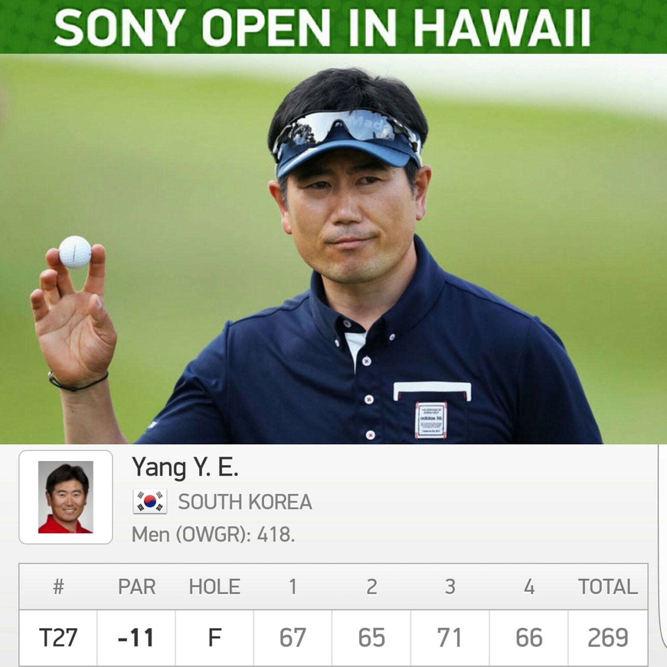 YE Yang will be pretty pleased with his first tournament of 2017, after a closing round 66, left him in a tie for 27th, at the PGA Tour Sony Open, in Hawaii. He has shown glimpses of his 2009 form on numerous occasions in recent years, but has struggled to get a consistent run of form going. Hopefully this week will help him put a string of solid performances together.