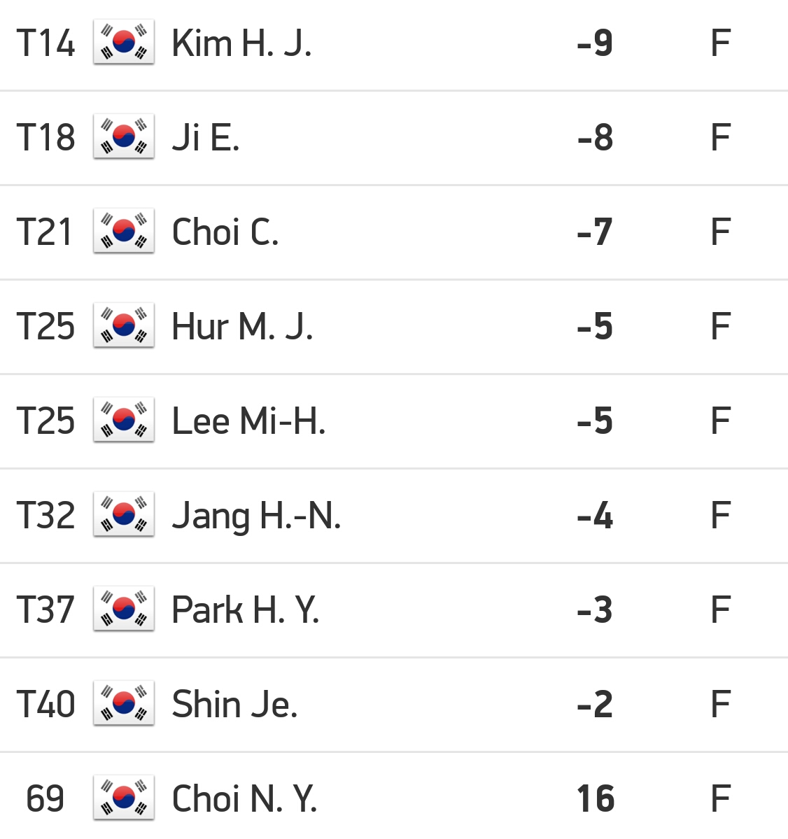 The rest of the Korean scores that are not mentioned are above ⬆👍⛳.
