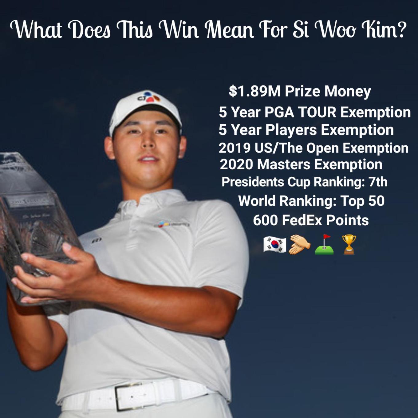 Kim joins an elite trio of multiple winners on the PGA Tour before turning 22- Tiger, Spieth and Garcia. The next step for Korean golf is to emulate YE Yangs 2009 PGA Championship. Now is the time to really focus on this and show the rest of the world that Korean mens golf can become a fearless nation, similar to their female counterparts 🇰🇷